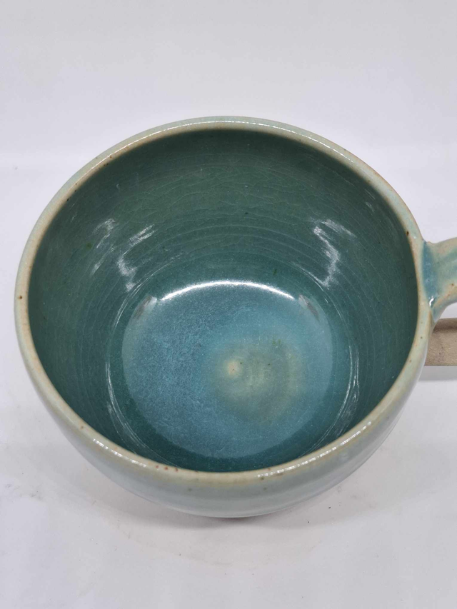 Abysse Azur 02 est une tasse de 25 cl , façonnée à la main dans mon atelier et recouverte d'un émail bleu-vert profond et nuancé, lisse, particulièrement unique grâce à ses coulures et son épaisseur visible. Ces variations subtiles de couleur, allant du turquoise intense à des tonalités plus claires, créent un effet fascinant, faisant de chaque tasse une pièce véritablement unique. Avec des dimensions de 7.5 cm et 9 cm , cette tasse n'est pas seulement fonctionnelle, mais aussi un objet d'art, apportant une touche véritablement élégante et réconfortante à votre quotidien.