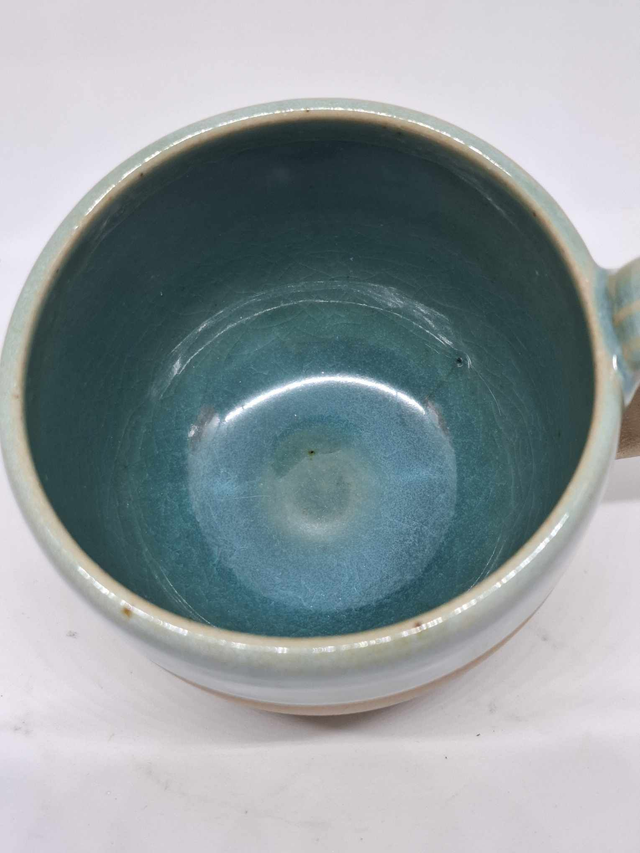 Abysse Azur 05 est une tasse de 30 cl, façonnée à la main dans mon atelier, qui offre une expérience particulièrement agréable. Un peu plus grande, elle est néanmoins très ronde et délicieusement agréable en main, offrant un véritable moment de réconfort. L’émail bleu-vert, profond et nuancé, se déploie subtilement, avec une texture lisse marquée par des coulures et une épaisseur légère qui lui confère un charme indéniable. Avec des dimensions de 9 cm et 8 cm, cette tasse transforme chaque instant en un doux moment à soi, alliant confort et esthétique.